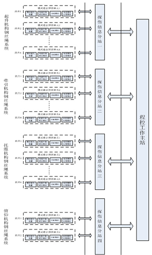 该系统分为模式组合探测单元、探伤信息分站和程控工作主站(设险情状态预报警机制)三大部分,各部分均定点安装。