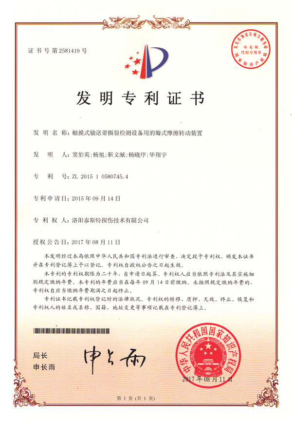 金秋硕果盈满枝,洛阳泰斯探伤技术有限公司(简称TST)喜获知识产权局颁发的四项发明利证书,分别是: