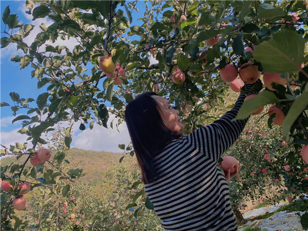 除了美味的烧烤,还有收获了一筐筐红彤彤的苹果。