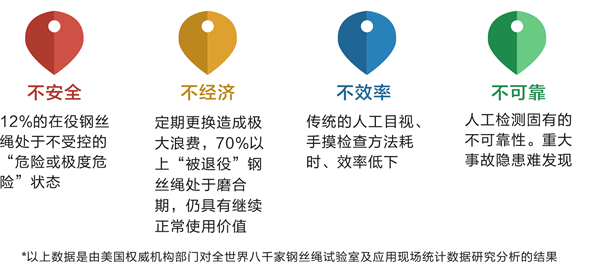 钢丝绳在使用过程中不可避免的会产生系列各类损伤威胁它的安和寿命,那么对它的安监控就不得不引起每位安管理者和参与者的重视,然而由于种种原因当前钢丝绳安管控问题不容乐观,主要体现在下几个方面:
