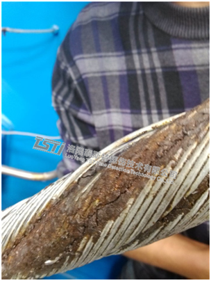 2013年10月30 日上午十点晋中寿阳**煤矿,我公司工程人员正忙碌着调试该矿四绳落地提升机钢丝绳探伤检测系统,调试前他们再次对机械部件、线路及主站等工作状态进行了仔细检查确认无误后,协调绞车司机开车进行调试。检测完毕后,查看检测数据发现有几处数值过大,考虑矿方告知该绞车钢丝绳是刚换不久的新绳,我工程人员虽心存疑虑但凭借着公司钢丝绳探测技术的稳定可靠和自身的工作经验断定该绞车四号钢丝绳有大损伤,本着求真务实,至诚服务的九州手机官方网站入口和为客户负责的职业操守,我工程人员将自己的判断告知配合的矿方技术人员说明该四绳绞车四号绳(正对检测设备左起四号绳)提升位置起61.47米处有大损伤存在安隐患。矿方技术人员听后不置可否对我们的设备性能半信半疑,此时此刻立即验伤查证,用事实说话比什么都有力量。于是再次协调绞车司机开车提升,绞车转动,十米、二十米、三十米……六十米,“断丝、有断丝”,绞车继续转动,六十点四米处“钢丝绳有松股,停车”,这声声惊呼都来自矿方技术人员。停车后,矿方人员和我工程人员起查看检测系统的检测信息,再到钢丝绳上验证伤情。这亭亭玉立的断丝,这潇潇洒洒的松股,这准确无误的检测数据,将矿方技术人员眼中的不信任丝丝抽离。安无小事,带着对我们公司设备检测准确无误的惊喜矿方技术人员立即通知了矿方主管安的导,很快主管导赶到现场,在听取了我工程人员对整个系统的介绍和刚才检测验伤的过程后,主管导又亲自查看了检测结果和钢丝绳实际伤情。主管导对我工程人员说:谢谢你们公司先进的检测技术和你们业严谨,务实负责的工作态度帮助我们及时发现这么大的钢丝绳安隐患,避免发生更大的安事故。虽然没有鲜花和掌声,但客户这么朴实无华的言语更是对我们公司的认可和赞扬。
